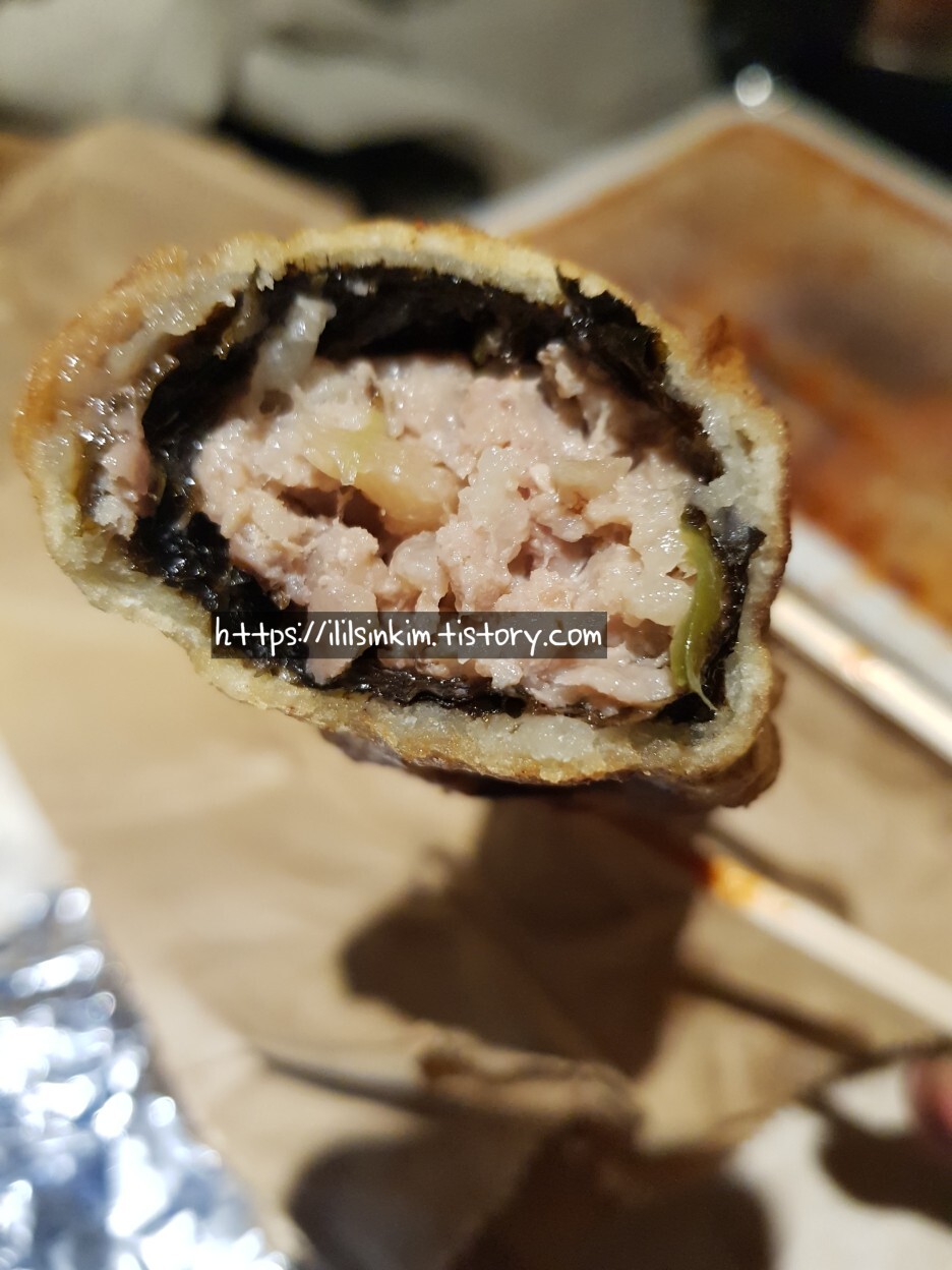 - 3000원이라 비싸다고 생각할 수 있지만 안에 차있는 고기에 떡볶이 소스를 찍어 먹으면 대박입니다.