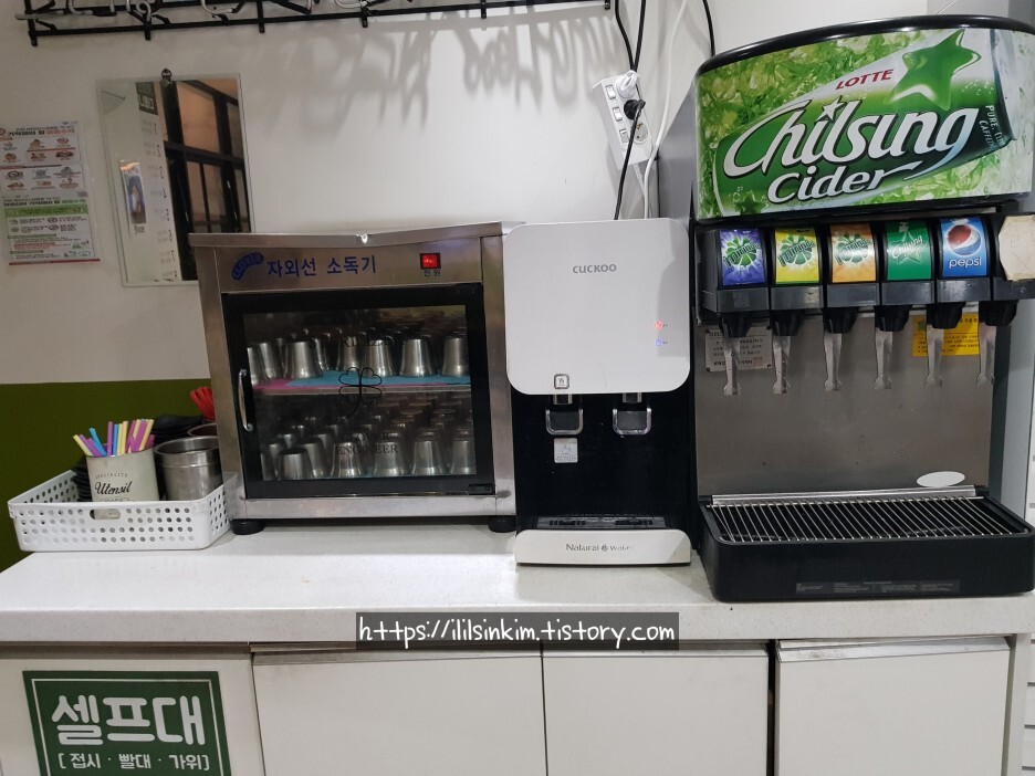 안에서 드신다면 접시 빨대, 가위 등은 셀프로 가져가시면 될 듯합니다~